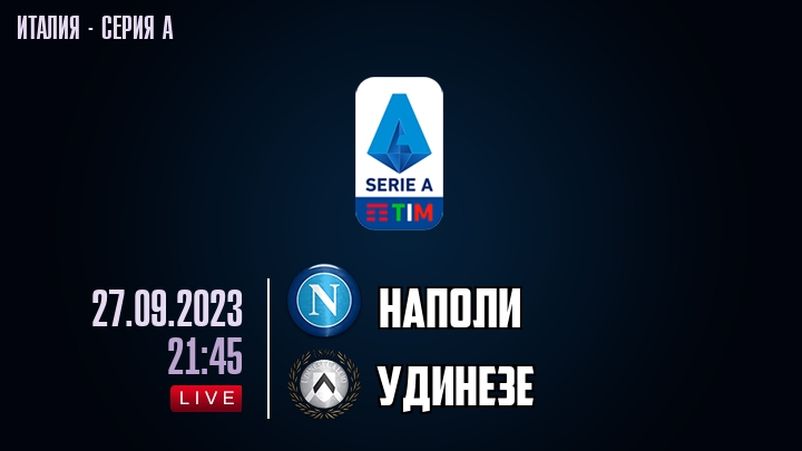 27 сентября 2023 года, состоялась онлайн трансляция футбольного матча между футбольным клубом Наполи и футбольным клубом Удинезе, проходящего в рамках Серии А чемпионата Италии.
