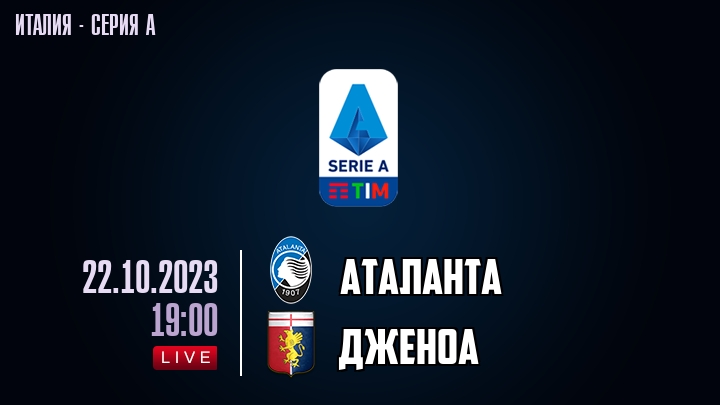 22 октября 2023 года, состоялась онлайн трансляция футбольного матча между футбольным клубом Аталанта и футбольным клубом Дженоа, проходящего в рамках Серии А чемпионата Италии.