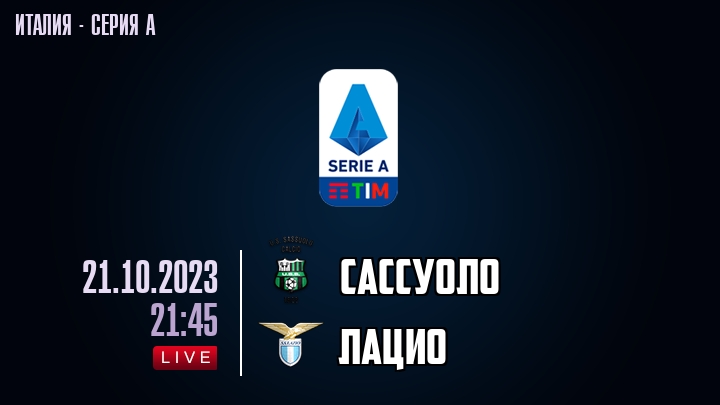 21 октября 2023 года, состоялась онлайн трансляция футбольного матча между футбольным клубом Сассуоло и футбольным клубом Лацио, проходящего в рамках Серии А чемпионата Италии.