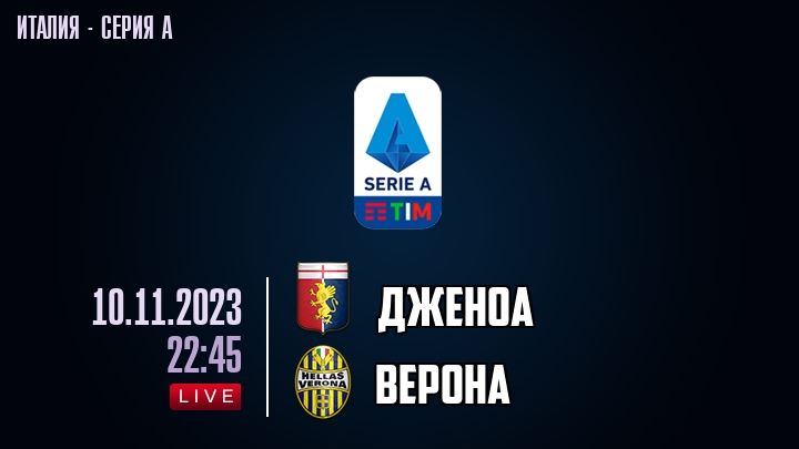 10 ноября 2023 года, состоялась онлайн трансляция футбольного матча между футбольным клубом Дженоа и футбольным клубом Верона, проходящего в рамках Серии А чемпионата Италии.