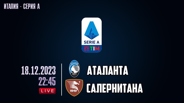 18 декабря 2023 года, состоялась онлайн трансляция футбольного матча между футбольным клубом Аталанта и футбольным клубом Салернитана, проходящего в рамках Серии А чемпионата Италии.