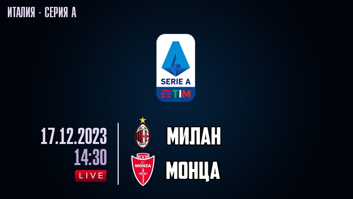 17 декабря 2023 года, состоялась онлайн трансляция футбольного матча между футбольным клубом Милан и футбольным клубом Монца, проходящего в рамках Серии А чемпионата Италии.