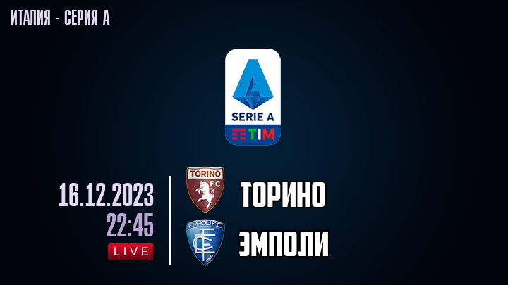 16 декабря 2023 года, состоялась онлайн трансляция футбольного матча между футбольным клубом Торино и футбольным клубом Эмполи, проходящего в рамках Серии А чемпионата Италии.