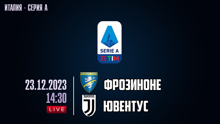 23 декабря 2023 года, состоялась онлайн трансляция футбольного матча между футбольным клубом Фрозиноне и футбольным клубом Ювентус, проходящего в рамках Серии А чемпионата Италии.