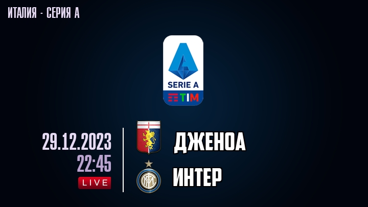 29 декабря 2023 года, состоялась онлайн трансляция футбольного матча между футбольным клубом Дженоа и футбольным клубом Интер, проходящего в рамках Серии А чемпионата Италии.