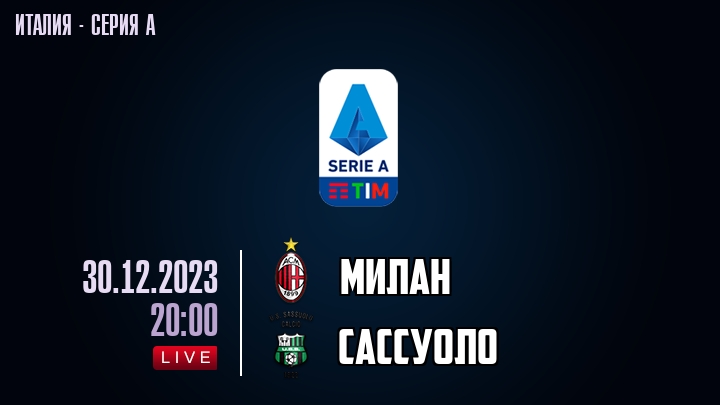 30 декабря 2023 года, состоялась онлайн трансляция футбольного матча между футбольным клубом Милан и футбольным клубом Сассуоло, проходящего в рамках Серии А чемпионата Италии.
