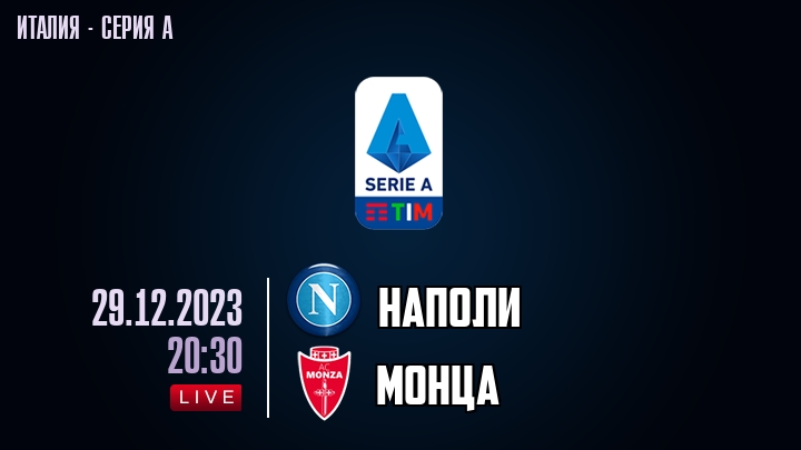 29 декабря 2023 года, состоялась онлайн трансляция футбольного матча между футбольным клубом Наполи и футбольным клубом Монца, проходящего в рамках Серии А чемпионата Италии.