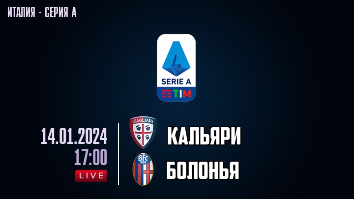 14 января 2024 года, состоялась онлайн трансляция футбольного матча между футбольным клубом Кальяри и футбольным клубом Болонья, проходящего в рамках Серии А чемпионата Италии.
