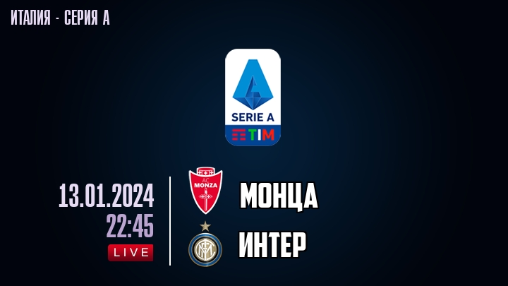13 января 2024 года, мы предлагаем посмотреть онлайн трансляцию футбольного матча между футбольным клубом Монца и футбольным клубом Интер, проходящего в рамках Серии А чемпионата Италии.