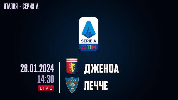 28 января 2024 года, состоялась онлайн трансляция футбольного матча между футбольным клубом Дженоа и футбольным клубом Лечче, проходящего в рамках Серии А чемпионата Италии.