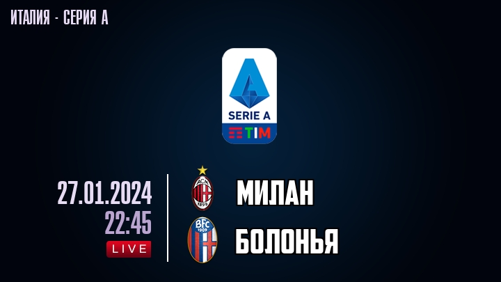 27 января 2024 года, состоялась онлайн трансляция футбольного матча между футбольным клубом Милан и футбольным клубом Болонья, проходящего в рамках Серии А чемпионата Италии.