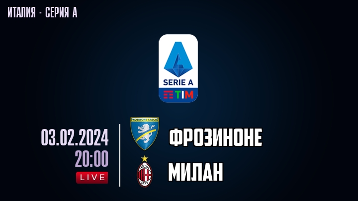 3 февраля 2024 года, состоялась онлайн трансляция футбольного матча между футбольным клубом Фрозиноне и футбольным клубом Милан, проходящего в рамках Серии А чемпионата Италии.