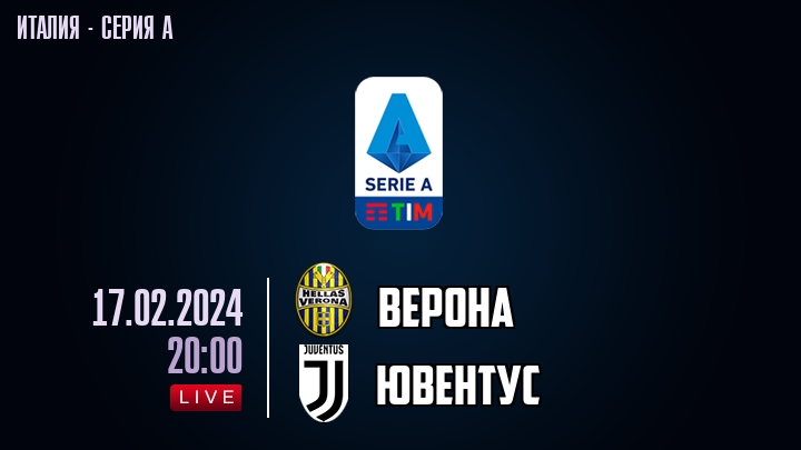 17 февраля 2024 года, состоялась онлайн трансляция футбольного матча между футбольным клубом Верона и футбольным клубом Ювентус, проходящего в рамках Серии А чемпионата Италии.