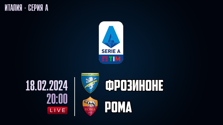 18 февраля 2024 года, состоялась онлайн трансляция футбольного матча между футбольным клубом Фрозиноне и футбольным клубом Рома, проходящего в рамках Серии А чемпионата Италии.