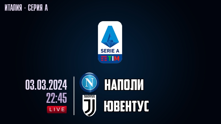 3 марта 2024 года, состоялась онлайн трансляция футбольного матча между футбольным клубом Наполи и футбольным клубом Ювентус, проходящего в рамках Серии А чемпионата Италии.