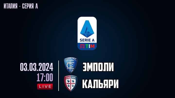 3 марта 2024 года, состоялась онлайн трансляция футбольного матча между футбольным клубом Эмполи и футбольным клубом Кальяри, проходящего в рамках Серии А чемпионата Италии.
