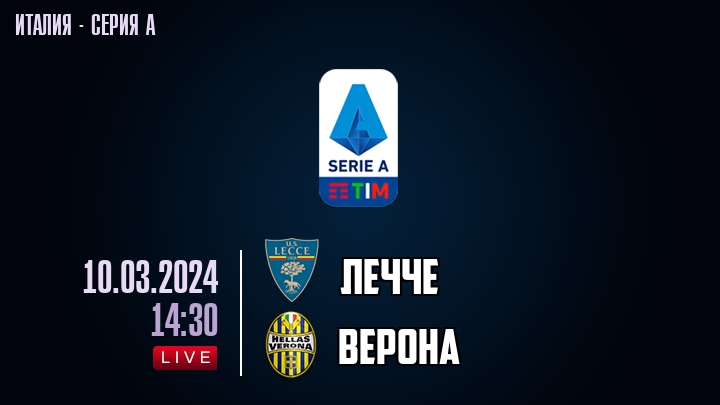 10 марта 2024 года, состоялась онлайн трансляция футбольного матча между футбольным клубом Лечче и футбольным клубом Верона, проходящего в рамках Серии А чемпионата Италии.