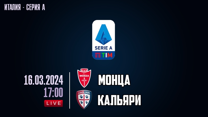 16 марта 2024 года, состоялась онлайн трансляция футбольного матча между футбольным клубом Монца и футбольным клубом Кальяри, проходящего в рамках Серии А чемпионата Италии.