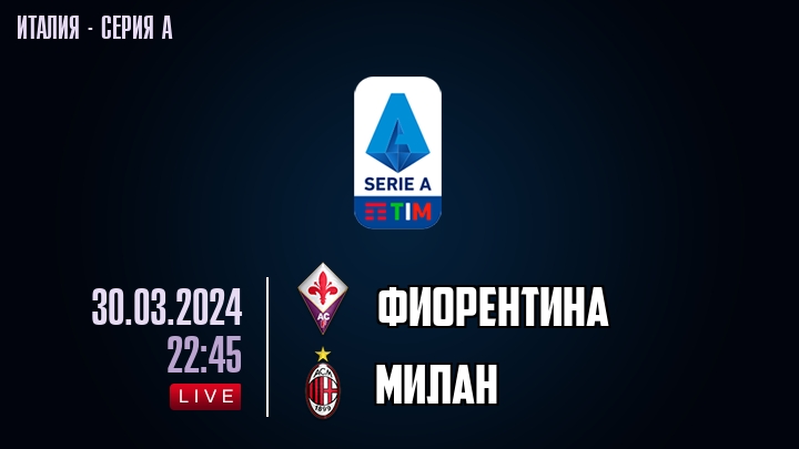 30 марта 2024 года, состоялась онлайн трансляция футбольного матча между футбольным клубом Фиорентина и футбольным клубом Милан, проходящего в рамках Серии А чемпионата Италии.