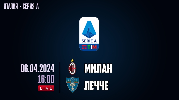 6 апреля 2024 года, состоялась онлайн трансляция футбольного матча между футбольным клубом Милан и футбольным клубом Лечче, проходящего в рамках Серии А чемпионата Италии.