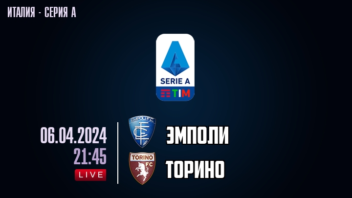 6 апреля 2024 года, состоялась онлайн трансляция футбольного матча между футбольным клубом Эмполи и футбольным клубом Торино, проходящего в рамках Серии А чемпионата Италии.