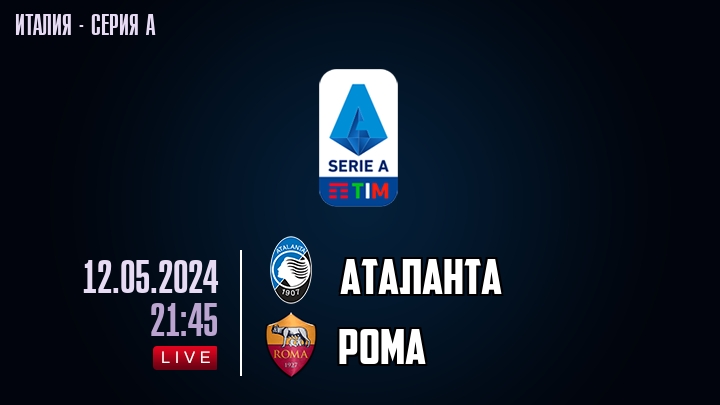 12 мая 2024 года, состоялась онлайн трансляция футбольного матча между футбольным клубом Аталанта и футбольным клубом Рома, проходящего в рамках Серии А чемпионата Италии.