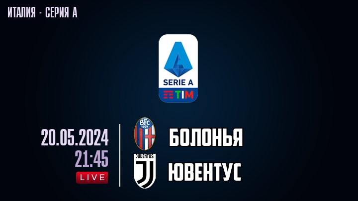20 мая 2024 года, состоялась онлайн трансляция футбольного матча между футбольным клубом Болонья и футбольным клубом Ювентус, проходящего в рамках Серии А чемпионата Италии.