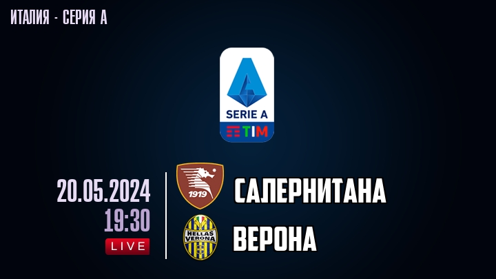 20 мая 2024 года, состоялась онлайн трансляция футбольного матча между футбольным клубом Салернитана и футбольным клубом Верона, проходящего в рамках Серии А чемпионата Италии.
