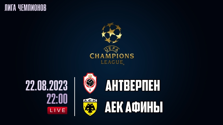 22 августа 2023 года, состоялась онлайн трансляция футбольного матча между футбольным клубом Антверпен и футбольным клубом АЕК Афины, проходящего в рамках Лиги Чемпионов.