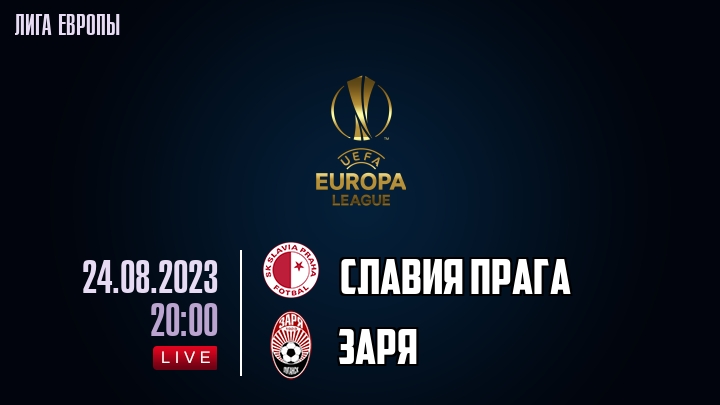 24 августа 2023 года, состоялась онлайн трансляция футбольного матча между футбольным клубом Славия Прага и футбольным клубом Заря, проходящего в рамках Лиги Европы.