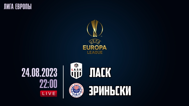 24 августа 2023 года, состоялась онлайн трансляция футбольного матча между футбольным клубом ЛАСК и футбольным клубом Зриньски, проходящего в рамках Лиги Европы.