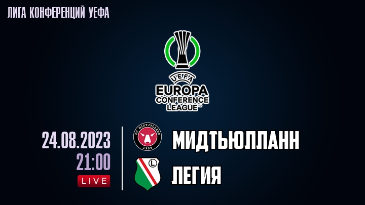 24 августа 2023 года, состоялась онлайн трансляция футбольного матча между футбольным клубом Мидтьюлланн и футбольным клубом Легия, проходящего в рамках Лиги конференций УЕФА.