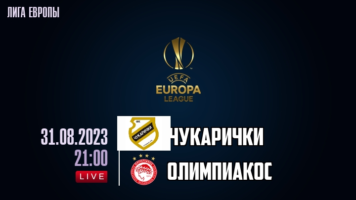 31 августа 2023 года, состоялась онлайн трансляция футбольного матча между футбольным клубом Чукарички и футбольным клубом Олимпиакос, проходящего в рамках Лиги Европы.