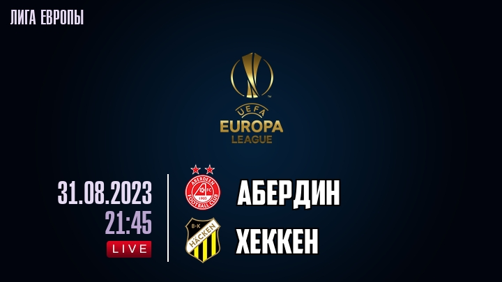31 августа 2023 года, состоялась онлайн трансляция футбольного матча между футбольным клубом Абердин и футбольным клубом Хеккен, проходящего в рамках Лиги Европы.