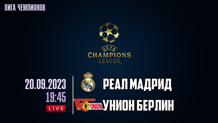 20 сентября 2023 года, состоялась онлайн трансляция футбольного матча между футбольным клубом Реал Мадрид и футбольным клубом Унион Берлин, проходящего в рамках Лиги Чемпионов.