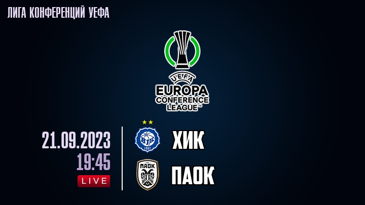 21 сентября 2023 года, состоялась онлайн трансляция футбольного матча между футбольным клубом ХИК и футбольным клубом ПАОК, проходящего в рамках Лиги конференций УЕФА.