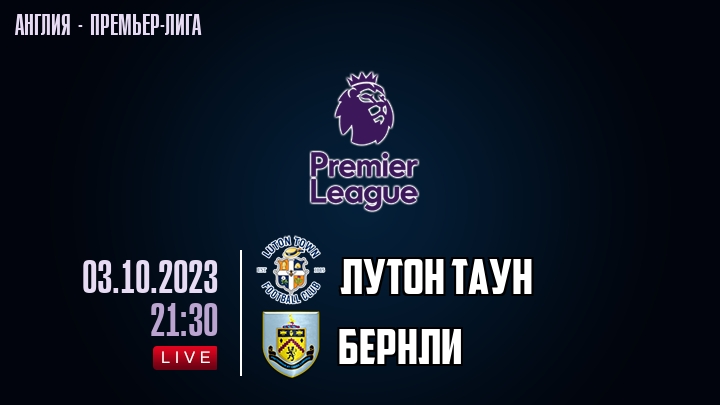 3 октября 2023 года, состоялась онлайн трансляция футбольного матча между футбольным клубом Лутон Таун и футбольным клубом Бернли, проходящего в рамках Премьер лиги Англии.