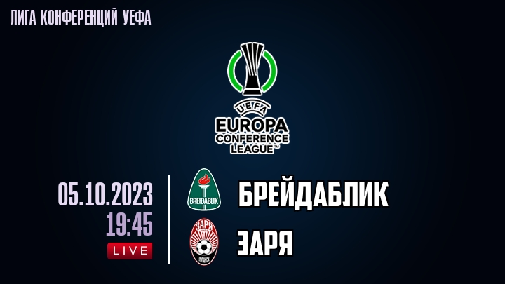 5 октября 2023 года, состоялась онлайн трансляция футбольного матча между футбольным клубом Брейдаблик и футбольным клубом Заря, проходящего в рамках Лиги конференций УЕФА.