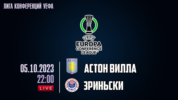 5 октября 2023 года, состоялась онлайн трансляция футбольного матча между футбольным клубом Астон Вилла и футбольным клубом Зриньски, проходящего в рамках Лиги конференций УЕФА.
