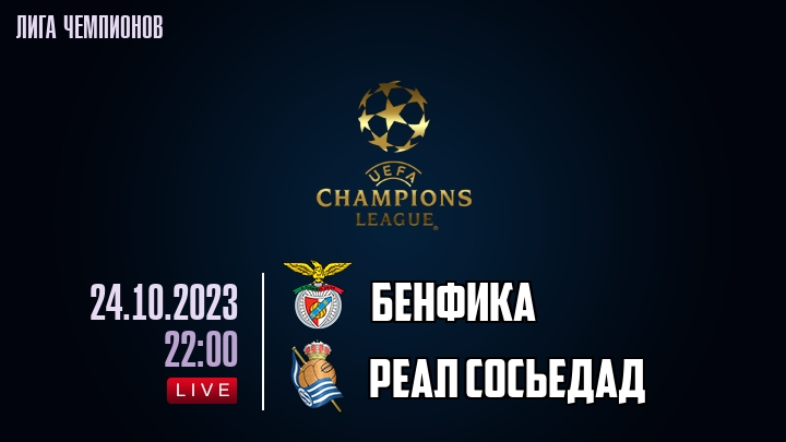 24 октября 2023 года, состоялась онлайн трансляция футбольного матча между футбольным клубом Бенфика и футбольным клубом Реал Сосьедад, проходящего в рамках Лиги Чемпионов.