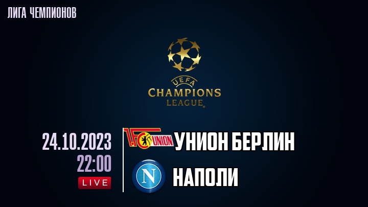 24 октября 2023 года, состоялась онлайн трансляция футбольного матча между футбольным клубом Унион Берлин и футбольным клубом Наполи, проходящего в рамках Лиги Чемпионов.