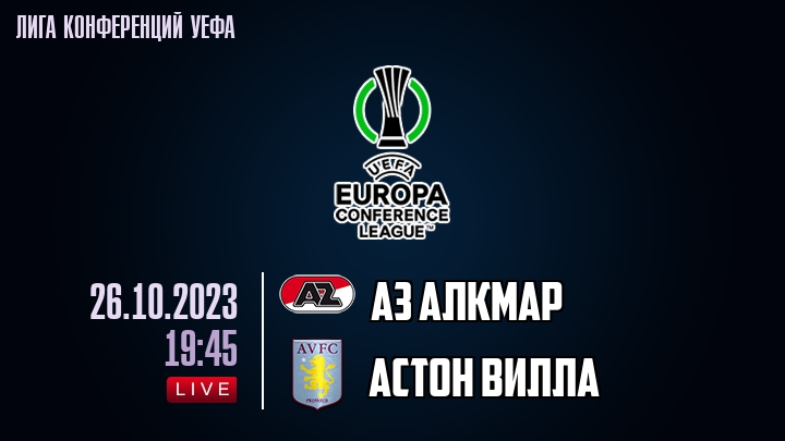 26 октября 2023 года, состоялась онлайн трансляция футбольного матча между футбольным клубом АЗ Алкмар и футбольным клубом Астон Вилла, проходящего в рамках Лиги конференций УЕФА.