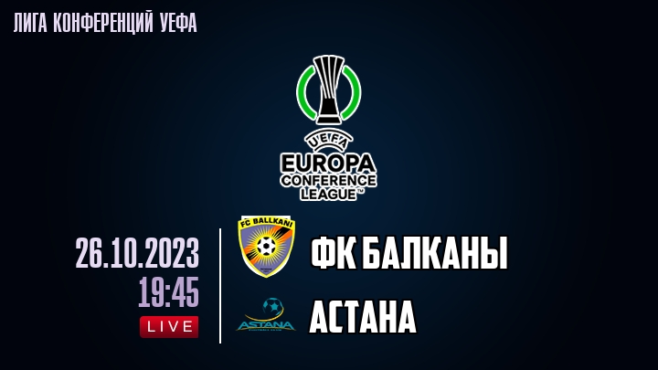 26 октября 2023 года, состоялась онлайн трансляция футбольного матча между футбольным клубом ФК Балканы и футбольным клубом Астана, проходящего в рамках Лиги конференций УЕФА.