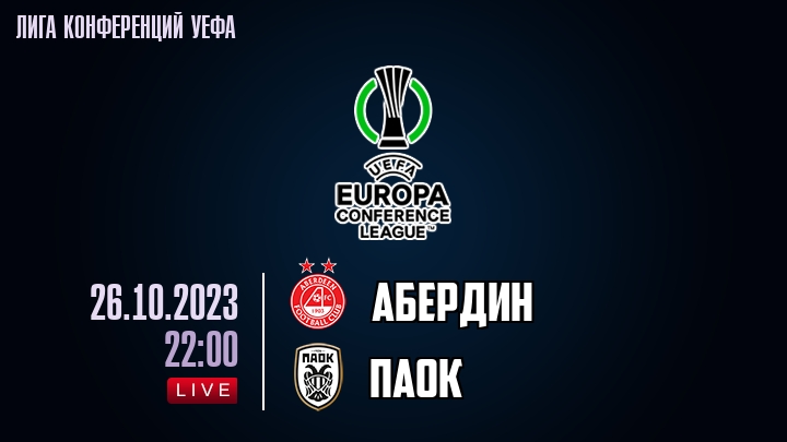 26 октября 2023 года, состоялась онлайн трансляция футбольного матча между футбольным клубом Абердин и футбольным клубом ПАОК, проходящего в рамках Лиги конференций УЕФА.