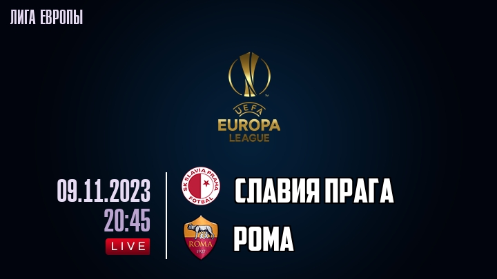9 ноября 2023 года, состоялась онлайн трансляция футбольного матча между футбольным клубом Славия Прага и футбольным клубом Рома, проходящего в рамках Лиги Европы.