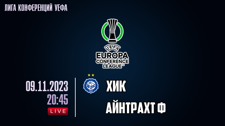 9 ноября 2023 года, состоялась онлайн трансляция футбольного матча между футбольным клубом ХИК и футбольным клубом Айнтрахт Ф, проходящего в рамках Лиги конференций УЕФА.