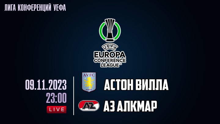 9 ноября 2023 года, состоялась онлайн трансляция футбольного матча между футбольным клубом Астон Вилла и футбольным клубом АЗ Алкмар, проходящего в рамках Лиги конференций УЕФА.