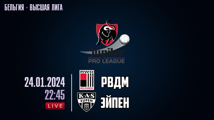 24 января 2024 года, состоялась онлайн трансляция футбольного матча между футбольным клубом РВДМ и футбольным клубом Эйпен, проходящего в рамках Высшей лиги Бельгии.