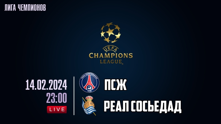 14 февраля 2024 года, состоялась онлайн трансляция футбольного матча между футбольным клубом ПСЖ и футбольным клубом Реал Сосьедад, проходящего в рамках Лиги Чемпионов.