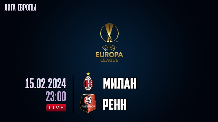 15 февраля 2024 года, состоялась онлайн трансляция футбольного матча между футбольным клубом Милан и футбольным клубом Ренн, проходящего в рамках Лиги Европы.